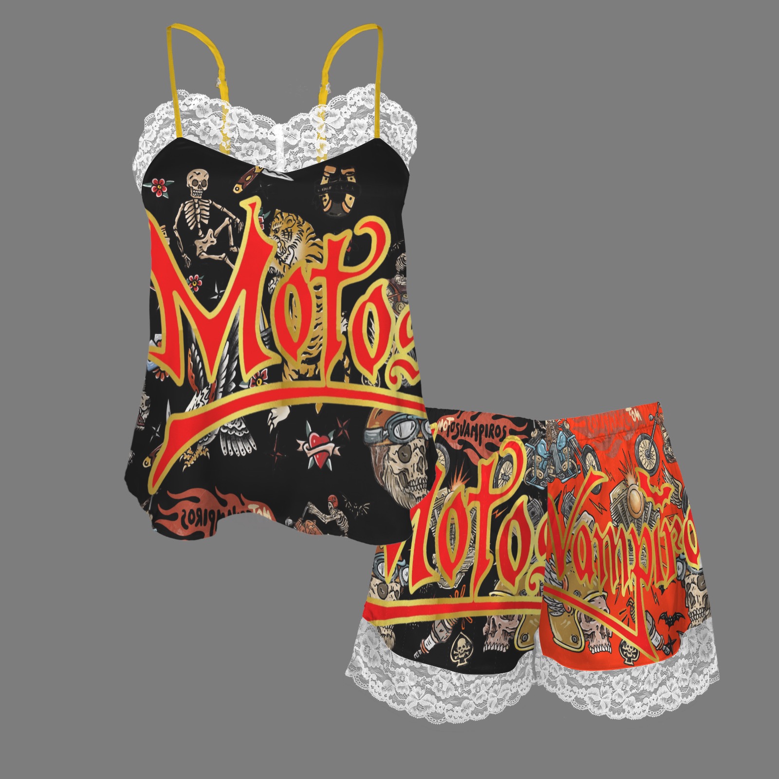 【Accessory Structure】Pajamas for woemn cami tops featuring lace splcing,deep v neck,low back. Shorts featuring elastic waistband and high waisted.