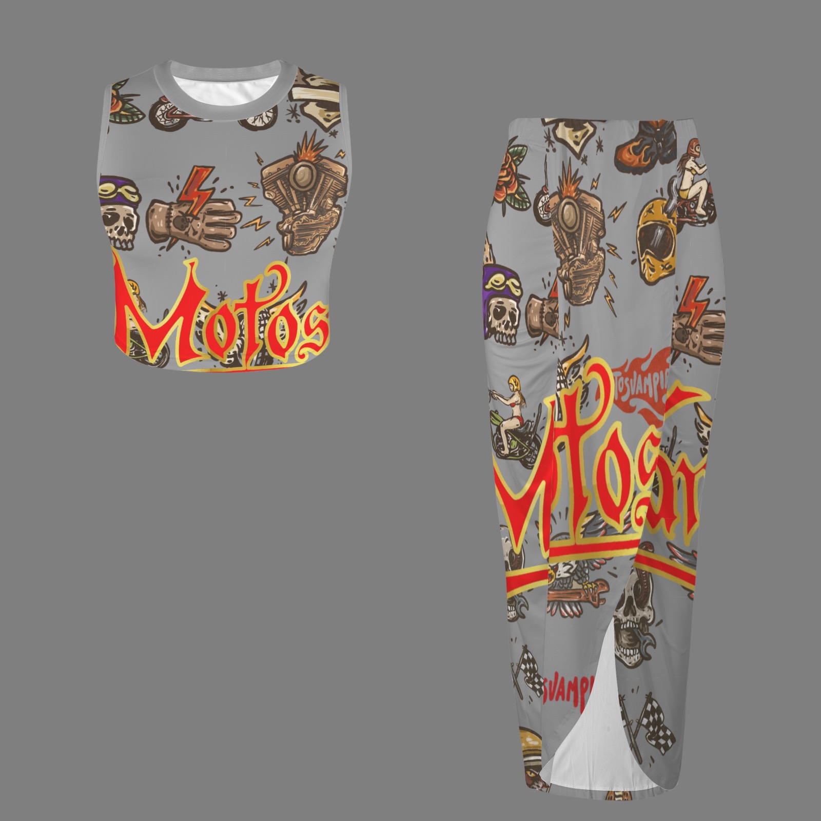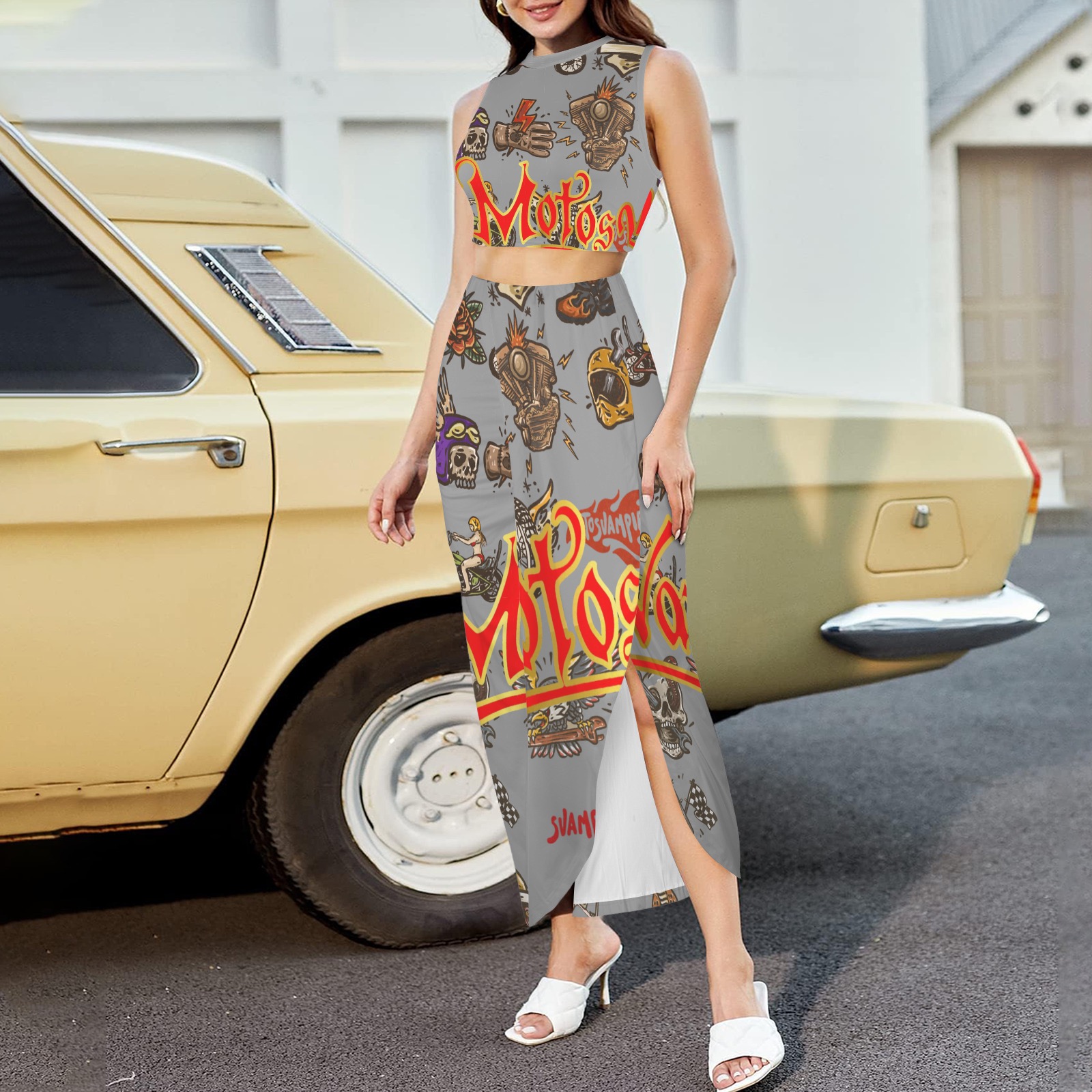 Crop Tank Top & Ruched Split High Skirt Set