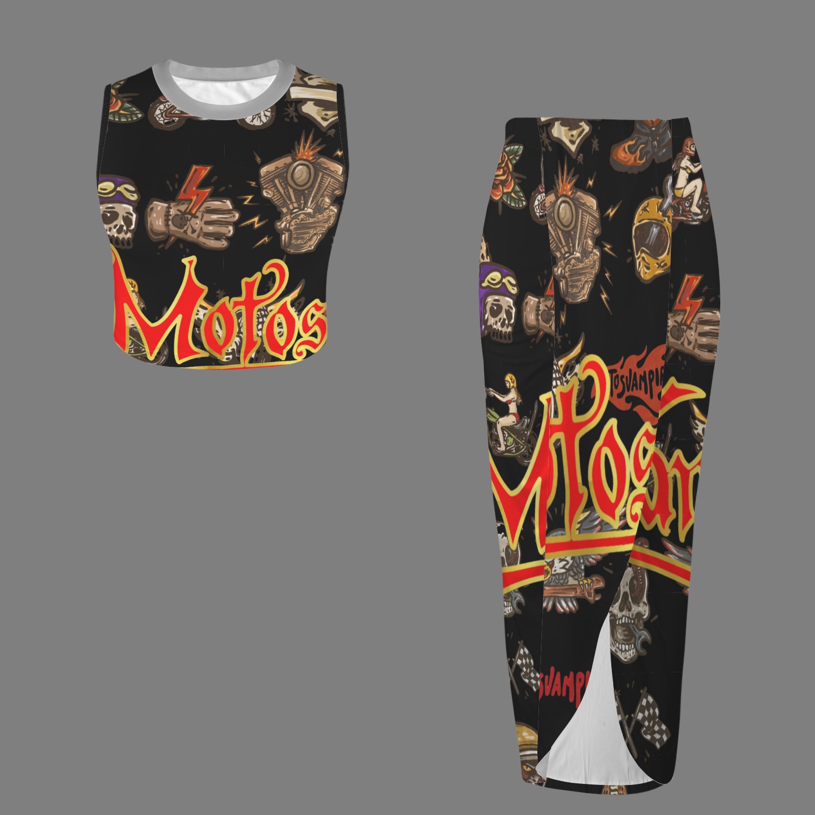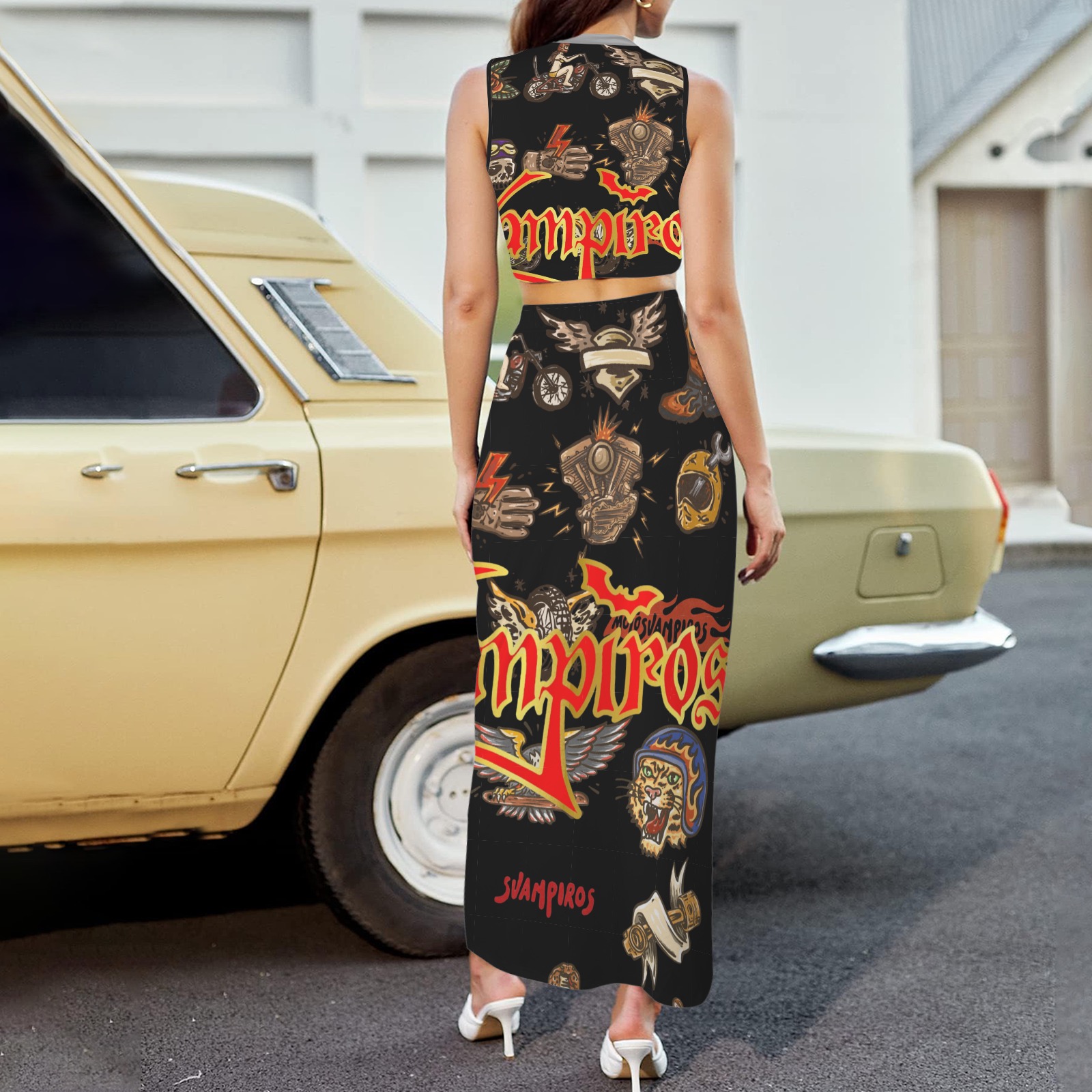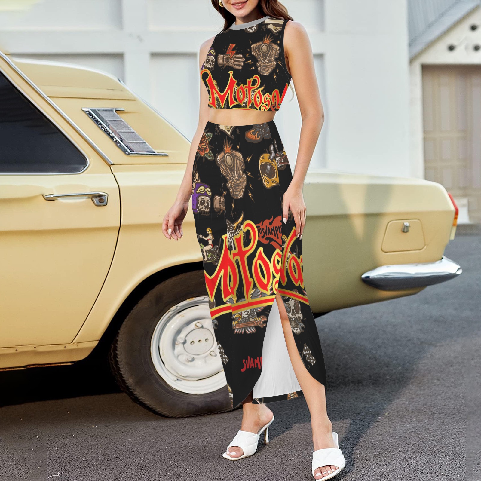 【Accessory Structure】Women’s crewneck crop tops and wrap draped midi skirt set with sleeveless style,sexy side slit two piece tank dress set,elegant frontal ruched design,comfortable calf length,a soft fitting summer cover ups.