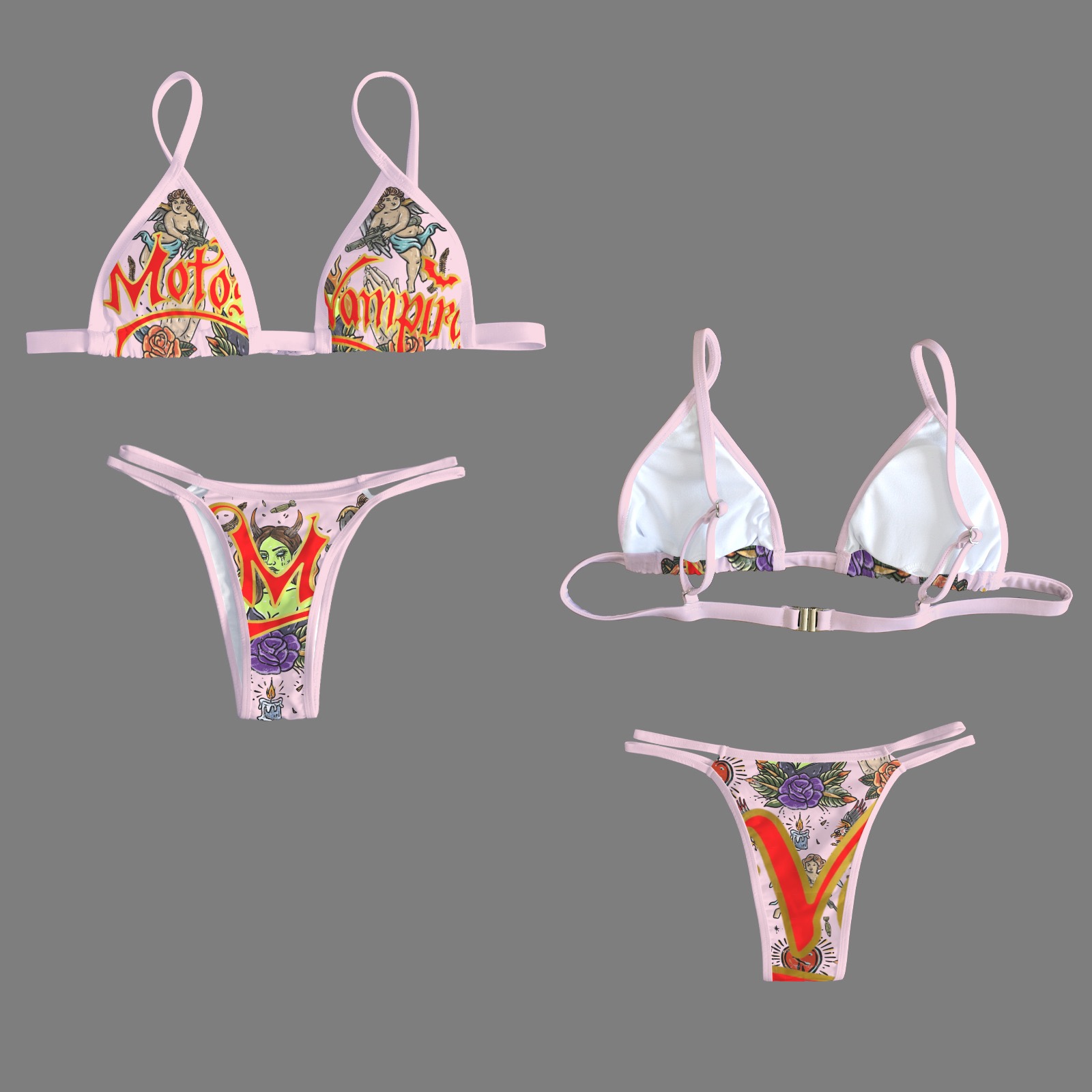 V Neck Triangle Bikini Top & Low Rise String Thong Set