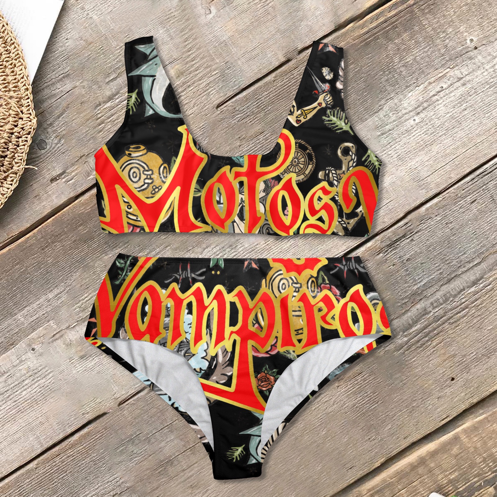 【Accessory Structure】Wide strap high waist two piece bikini swimsuit with soft chest pads.