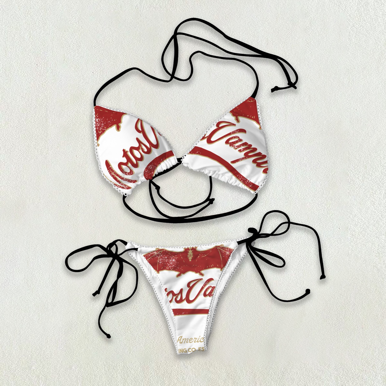 【Accessory Structure】String bikini with lace trim and soft chest pads.