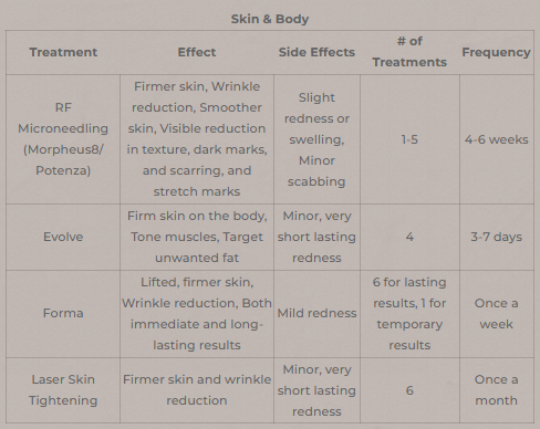 These services are all based on cutting-edge, FDA-approved technologies that provide dramatic non-surgical effects. If you want to look more toned for summer or you’d like a literal facial pick-me-up, one of our Skin and Body services will give you the desired results.