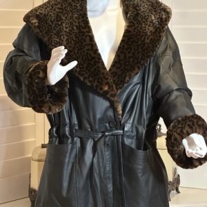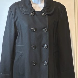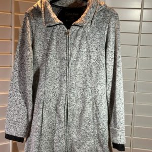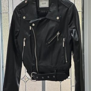 Clothes$55.00 Add to cartGili Faux leather Jacket with attached knit scarf all down the front preowned like new also Belt
