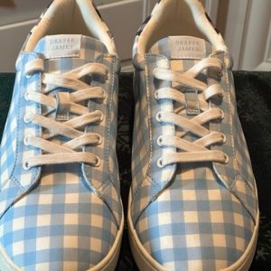 New Draper James Sneakers Canvas low top Sneakers gingham Check Blue +White $45