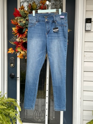 2 Button high waist But lofter Skinny Jean’s size 14 Color Blue Washed